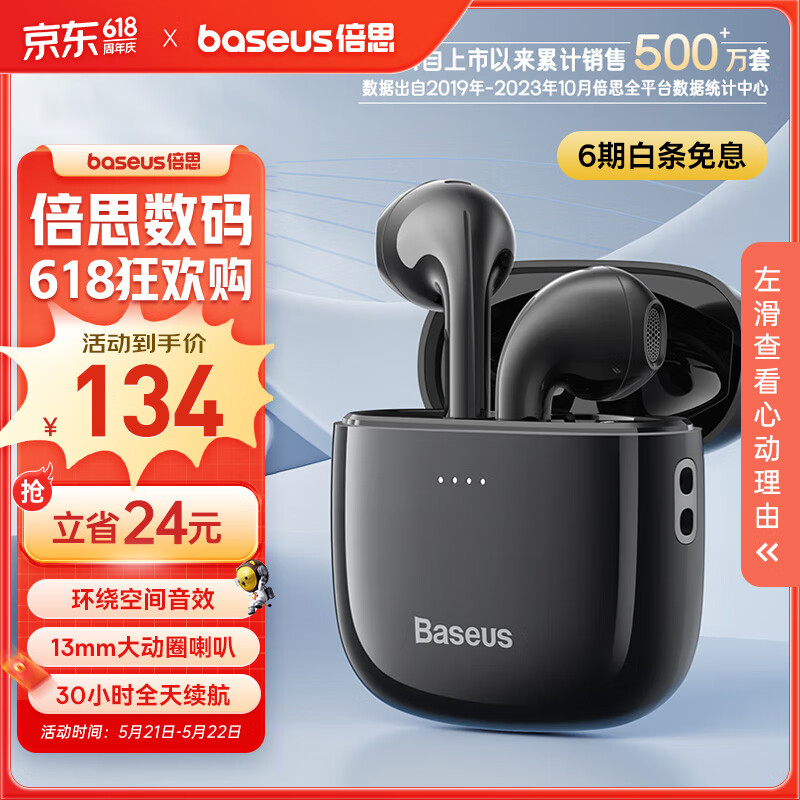 倍思W04 2023版无线蓝牙耳机半入耳运动降噪长续航运动适用于苹果小米oppo荣耀vivo手机 黑价格:134.00元!