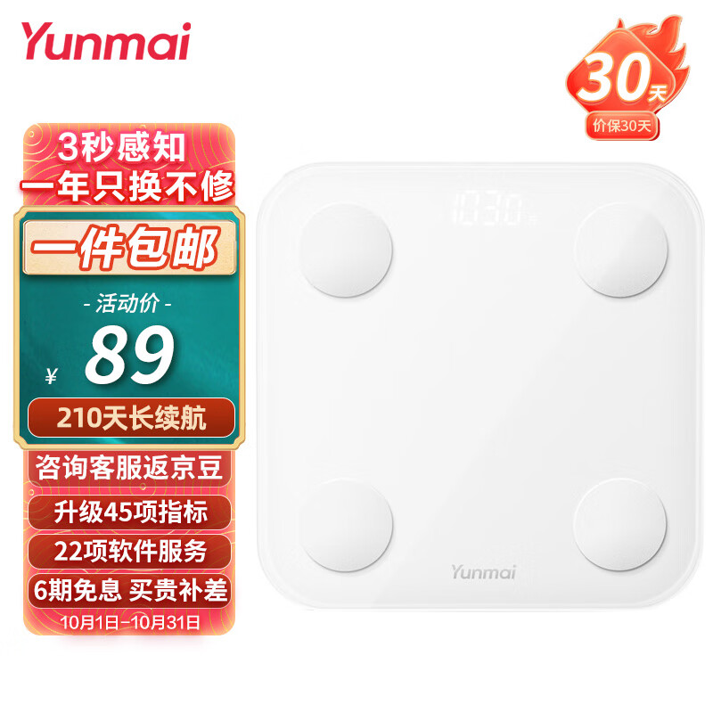 云麦好轻体脂秤SE 3S充电智能电子秤家用体重秤 升级45项人体健康数据 高精准减肥mini秤脂肪称礼物礼品价格:76.90元!