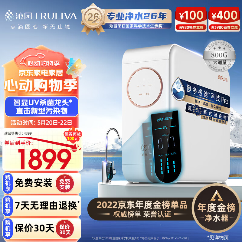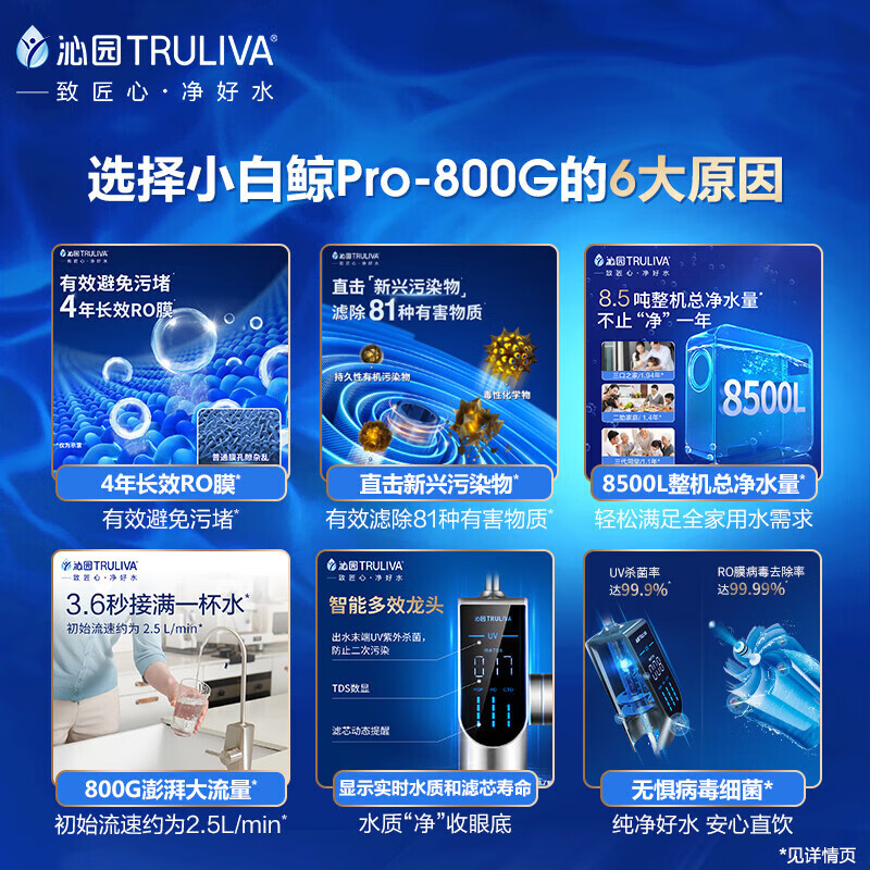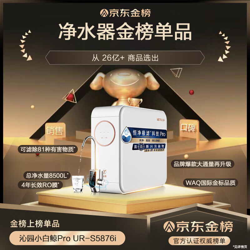 沁园(TRULIVA)小白鲸pro升级版800G智能家用净水器4年RO反渗透厨下直饮2.5L/分钟 UR-S5876i价格:1999.00元!