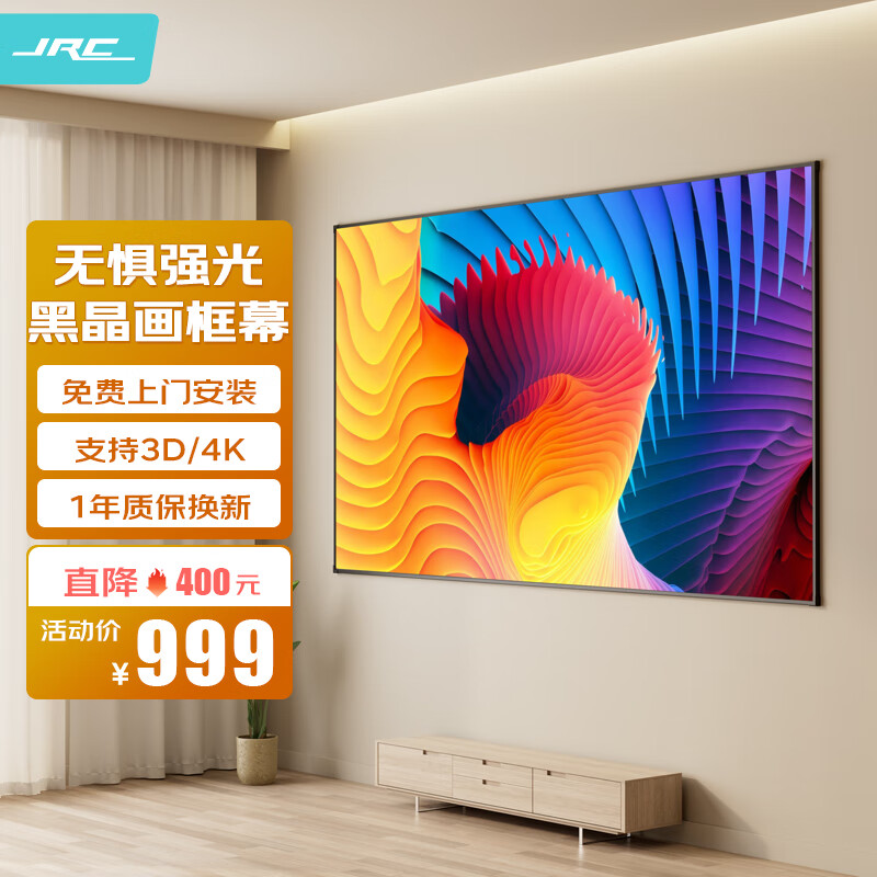 极川 120英寸投影幕布抗光幕布画框幕布投影仪幕布家用挂壁式白天防光抗光屏幕布 超窄边金属黑晶幕布16:9价格:999.00元!