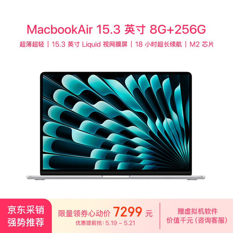 Apple/苹果AI笔记本/2023MacBookAir 15英寸 M2(8+10核)8G 256G银色电脑MQKR3CH/A价格:10499.00元!