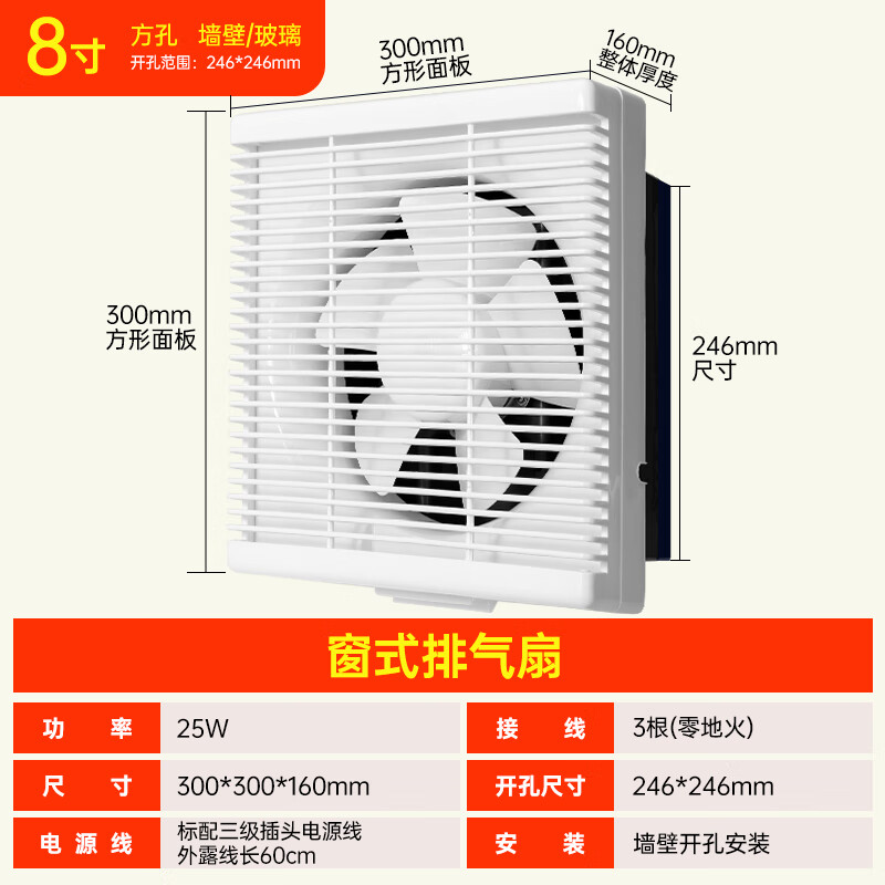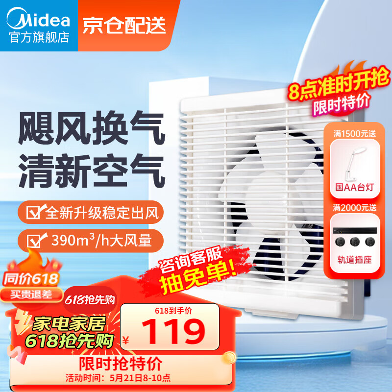 美的(Midea)窗式排气扇换气扇卫生间厨房墙用排风扇8寸抽风机价格:139.00元!