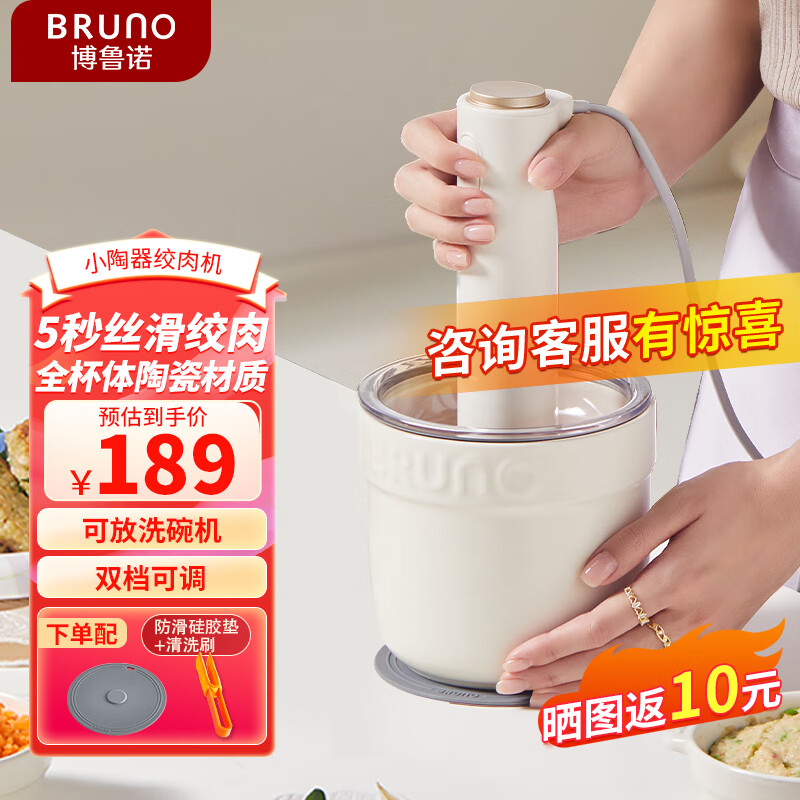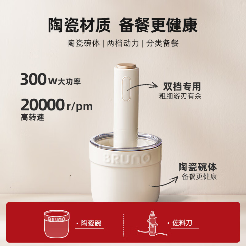 BRUNO小陶器绞肉机佐料机家用套娃绞馅机碎肉机电动多功能辅食料理机磨粉机打蒜搅拌机陶瓷象牙白标配款价格:189.00元!