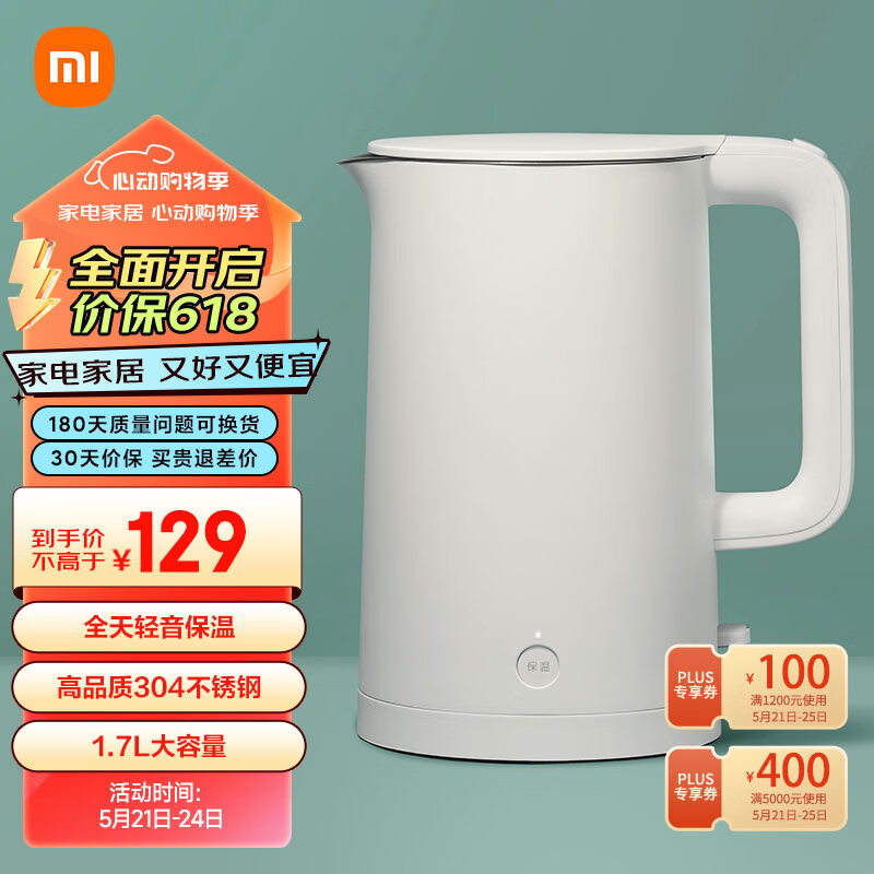 米家小米烧水壶保温一体全自动恒温电热水壶煮水壶家用 食品级304不锈钢 自动断电1.7升大容量1S价格:129.00元!
