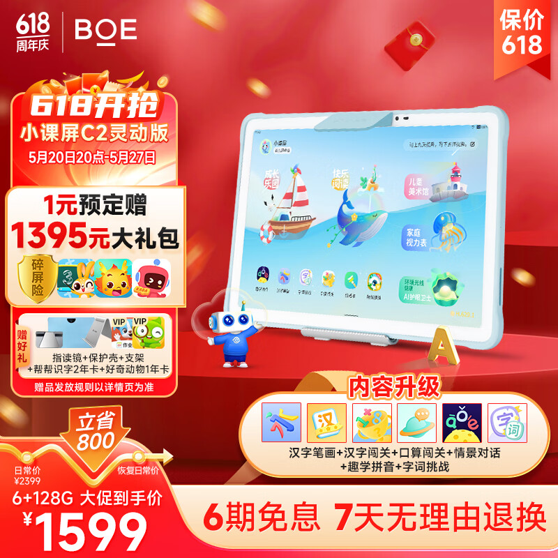 BOE京东方小课屏C2-128G10.1英寸学生学习平板 类纸护眼儿童学习机小学初高中同步网课早教家教机RAZ价格:1599.00元!