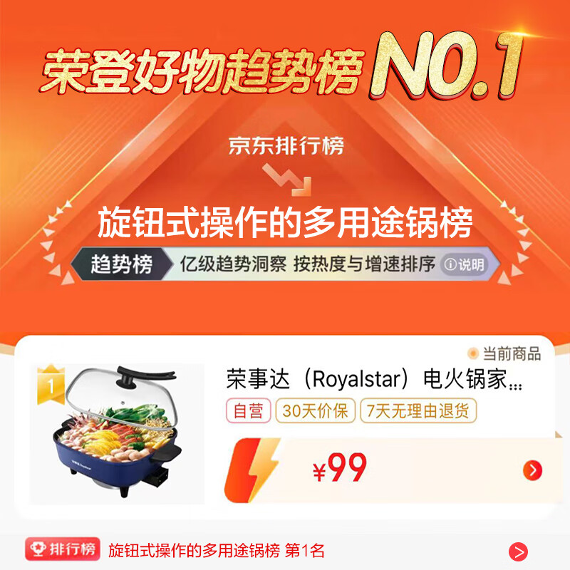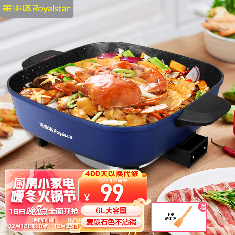 荣事达(Royalstar)电火锅家用多功能煎烤涮一体炒菜电锅6L大容量不沾电热锅电煮锅电炒锅 RHG-136B价格:99.00元!