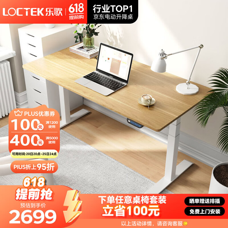 乐歌电动升降桌电脑桌站立办公学习桌写字桌书桌E5-N/1.8m原木色套装价格:2699.00元!