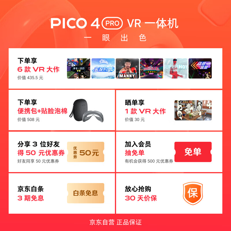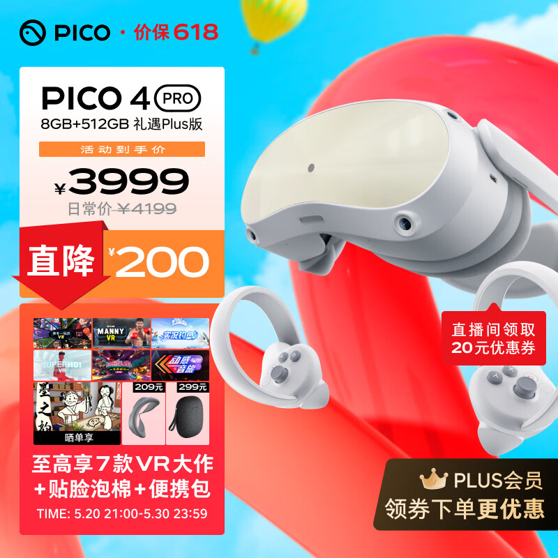 PICO抖音集团旗下XR品牌 PICO 4 Pro VR 一体机 8+512G 礼遇Plus版 VR眼镜头显 智能AR眼镜非quest3价格:3999.00元!