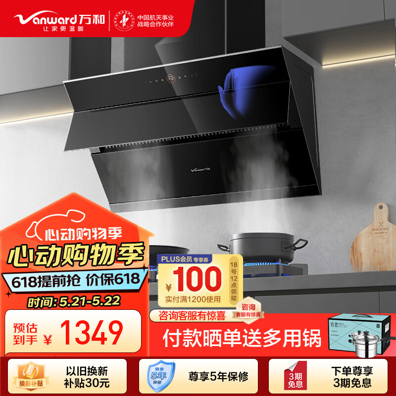 万和(Vanward)侧吸式抽油烟机家用厨房油烟机 24立方米大吸力 直流变频大风压 自清洗 挥手智控吸油烟机WJ920价格:1449.00元!