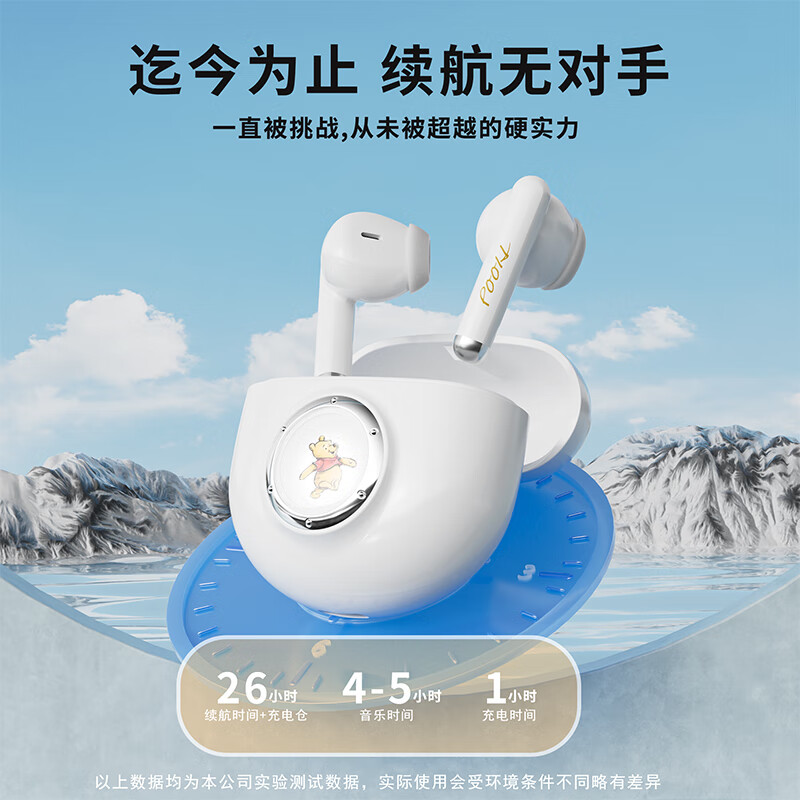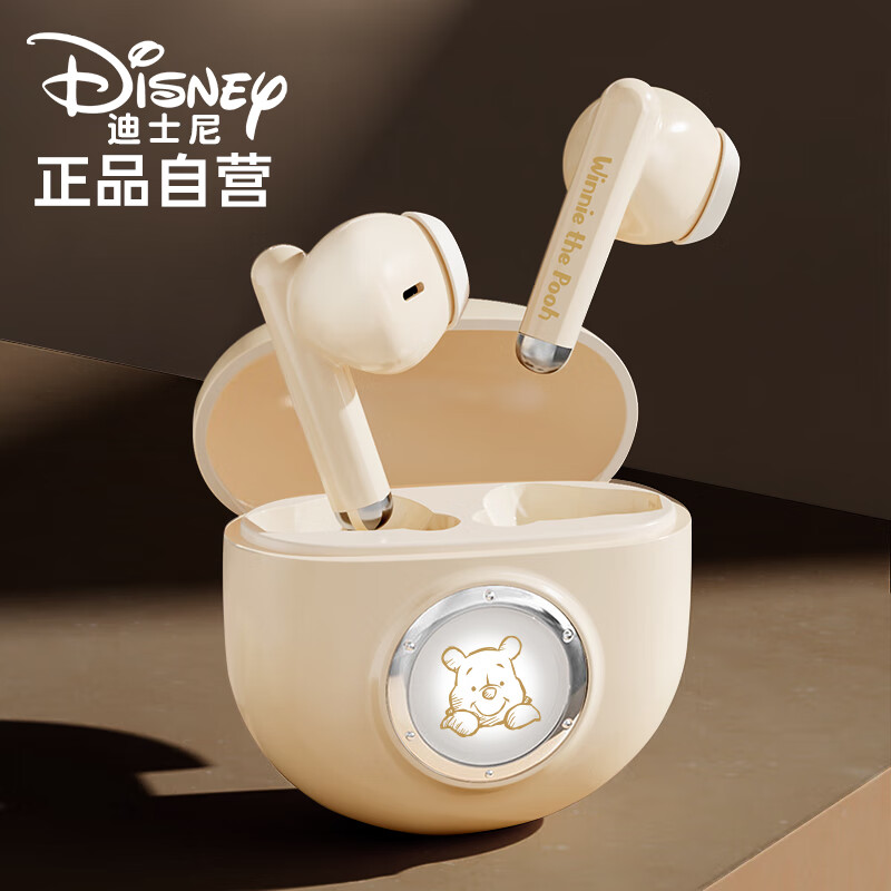 迪士尼(DISNEY)【炫光亮屏】QS-11蓝牙耳机真无线半入耳式运动跑步迷你可爱音乐降噪苹果安卓通用【维尼米色】价格:109.00元!
