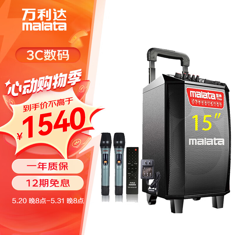 万利达(Malata)M+9058户外唱歌蓝牙无线音响便携广场舞移动拉杆音箱家用15英寸大功率低音炮无线话筒L15价格:1790.00元!