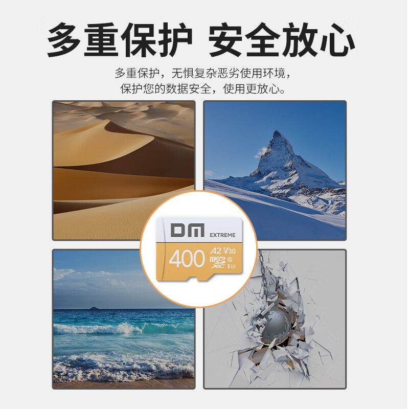 DM大迈 400GB TF(MicroSD)存储卡 金卡 A2 V30 手机行车记录仪监控摄像头多设备兼容高速内存卡价格:139.90元!
