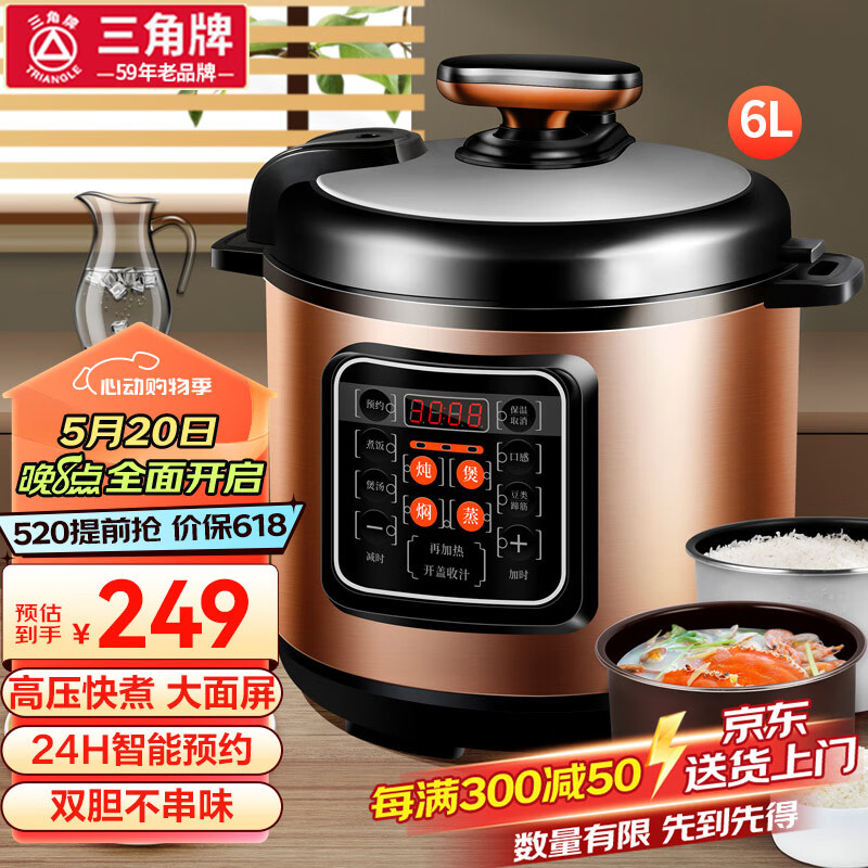 三角牌(Triangle)电锅家用高压锅多功能电高压锅高压电饭锅饭煲大容量煲汤 6升双胆(适合5-8人)价格:249.00元!