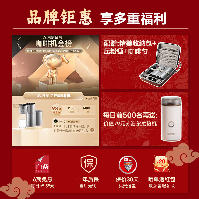 苏泊尔(SUPOR)意式浓缩家用半自动咖啡机 礼物送长辈 办公室小型露营便携摩卡手冲壶 全自动美式花式 SW-CFP201价格:999.00元!