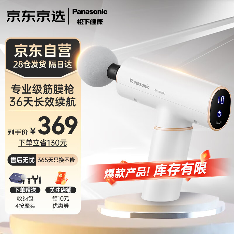 松下(Panasonic)筋膜枪迷你便携式按摩器颈膜枪肌肉深层放松家用商用专业级送父母情侣礼物生日年会礼品RAD21 白色价格:369.00元!