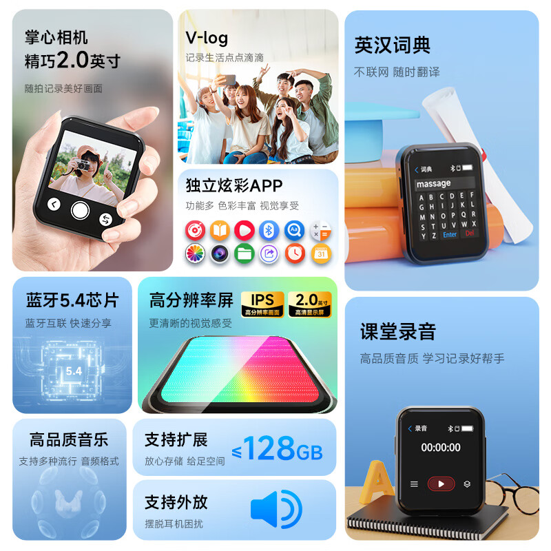 爱国者aigo 805可拍照摄像mp3/mp4视频播放器 2英寸触屏蓝牙5.4外放无损HIFI学生英语随身听电子书 16G价格:179.00元!