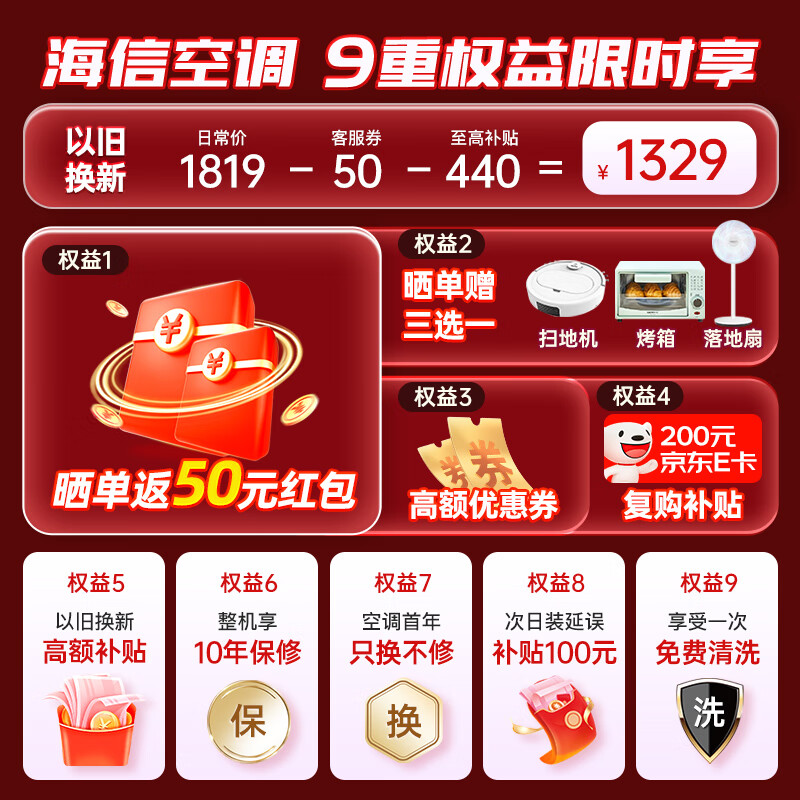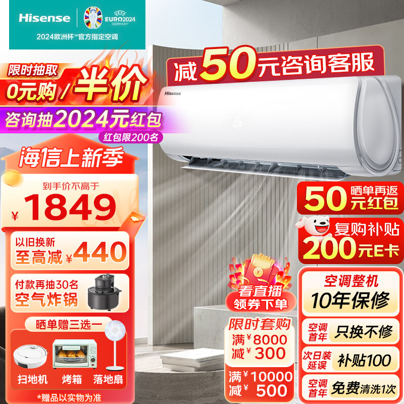 海信空调大1匹挂机一键息屏变频节能高温烘干自清洁独立除湿壁挂式卧室空调挂机KFR-26GW/E25A3价格:1849.00元!