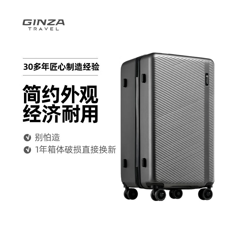 银座大容量行李箱简约商务拉杆箱开学登机箱A-2023 高级灰28英寸价格:359.00元!