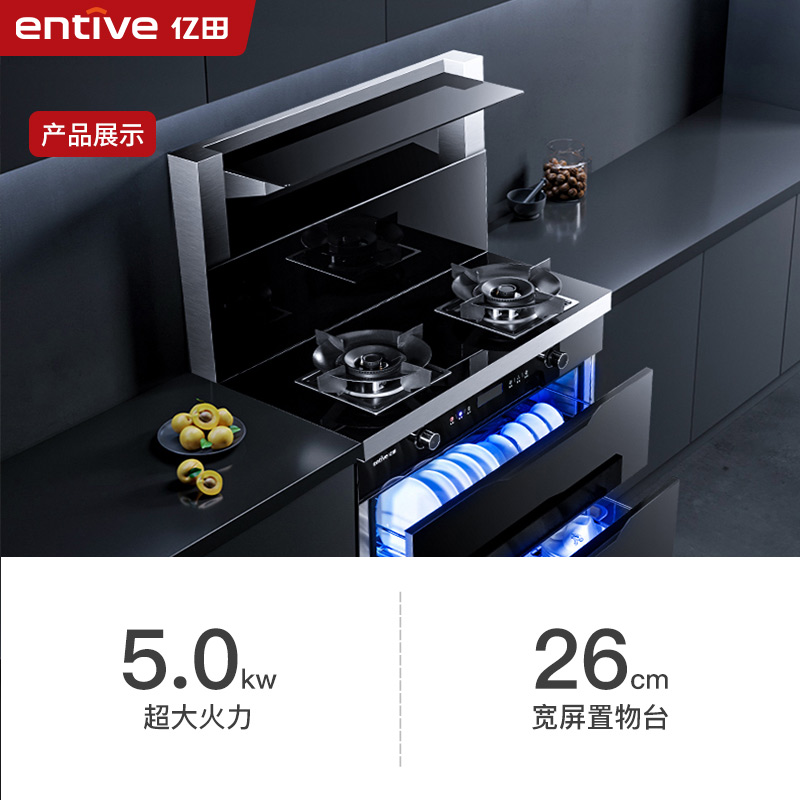 亿田 集成灶消毒烘干柜 80度恒温消毒 集成灶一体灶家用 Q-J02D玻璃台面 天然气价格:6299.00元!