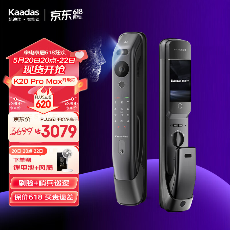 凯迪仕(kaadas)指纹锁全自动智能锁 智能门锁可视猫眼大屏 K20 Pro Max V2价格:3699.00元!