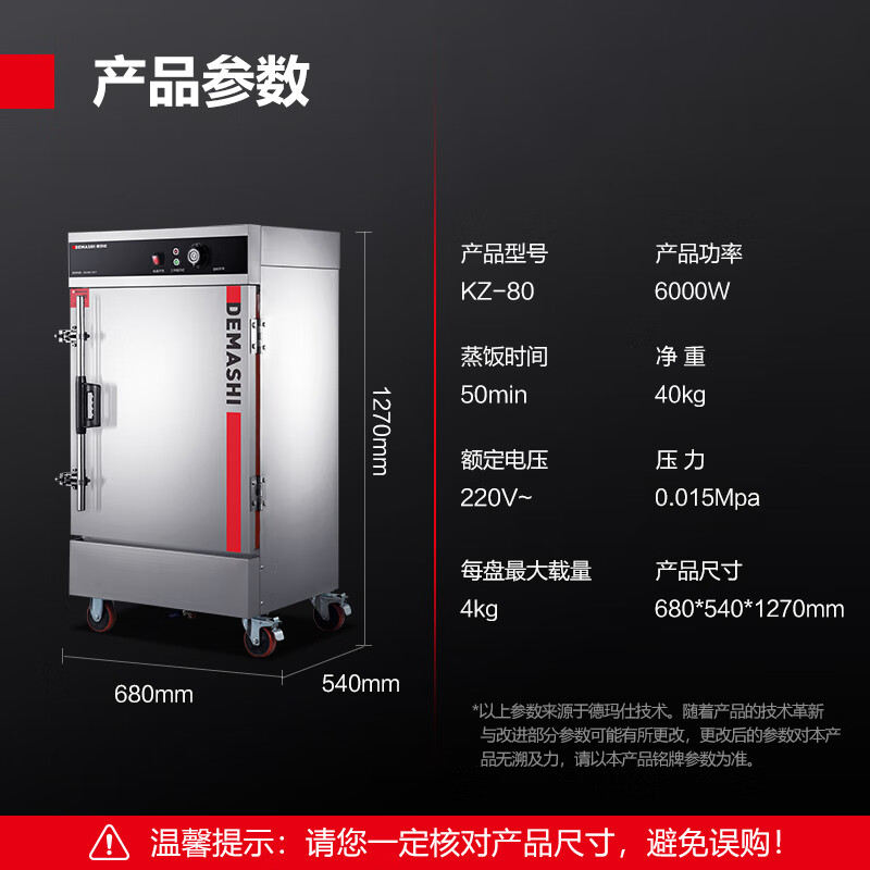 德玛仕商用蒸饭柜商用蒸箱蒸饭车蒸炉蒸饭机食堂蒸箱小型蒸饭器食堂酒店餐厅蒸菜工厂单位学校饭堂防干烧 8盘定时款防干烧|有孔无孔各一半价格:2848.00元!
