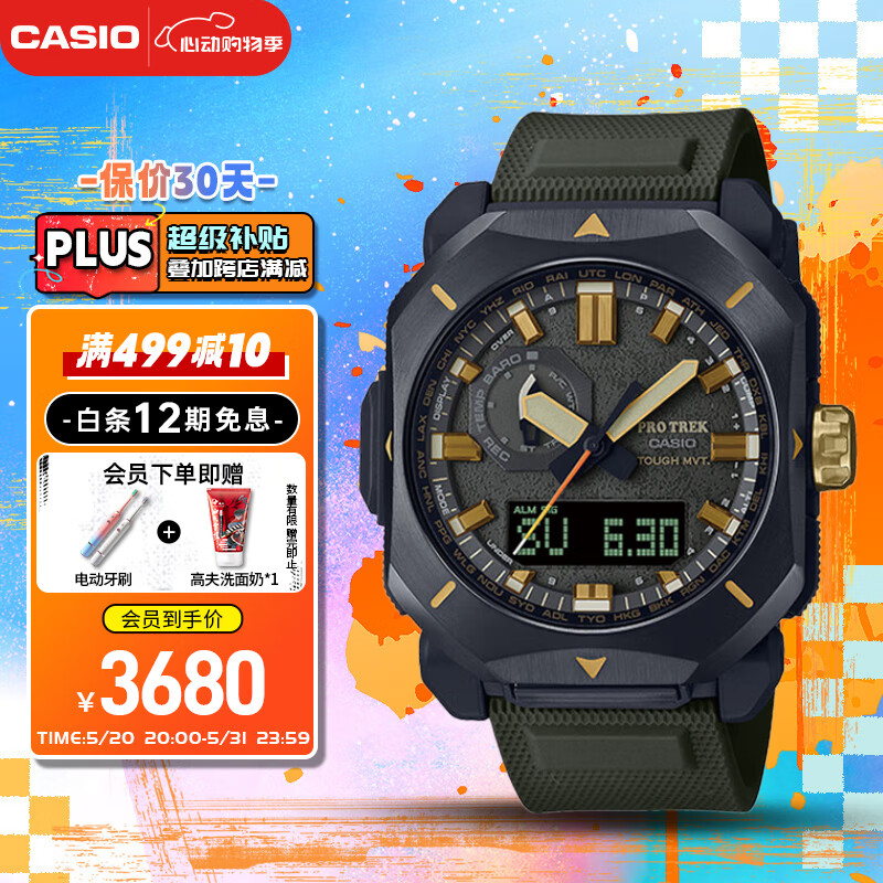 卡西欧(CASIO)手表男士PROTREK运动户外电子表520送男友礼物PRW-6900Y-3价格:3690.00元!