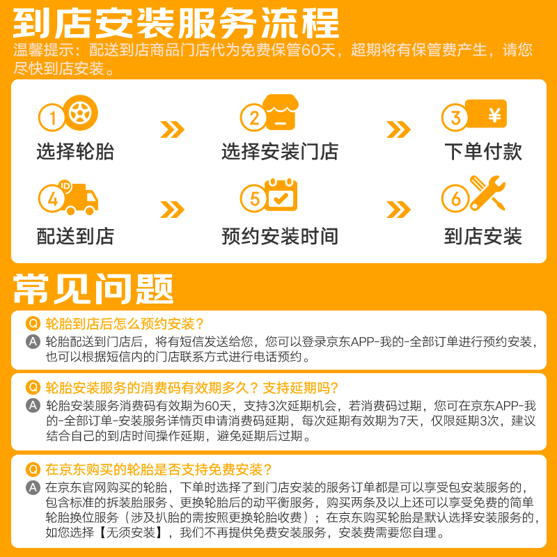 4、京东自己的京车汇安装,店员非常热情,轮胎一到店就通知我了,店里面非常干净整洁,小哥技术很熟练,过程中店长也不停讲解我的一些疑问,总的来说非常不错。
