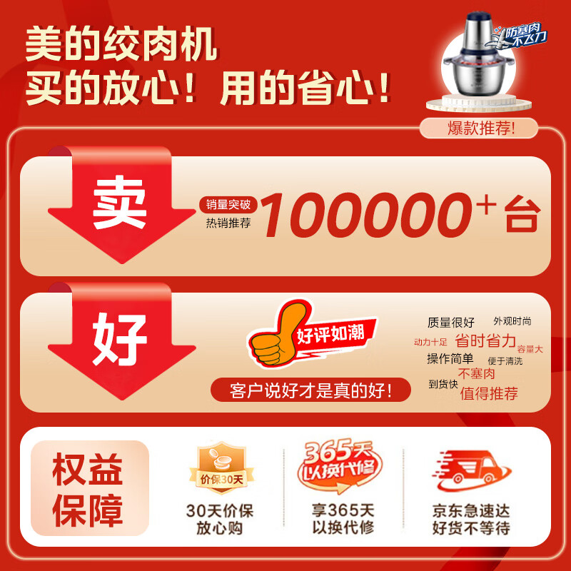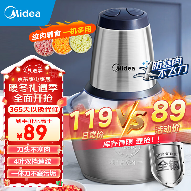 美的(Midea)绞肉机家用 电动多功能绞馅机碎肉机不锈钢料理机打肉搅拌婴儿辅食机肉馅蒜蓉机绞馅机LZ25Easy235价格:89.00元!