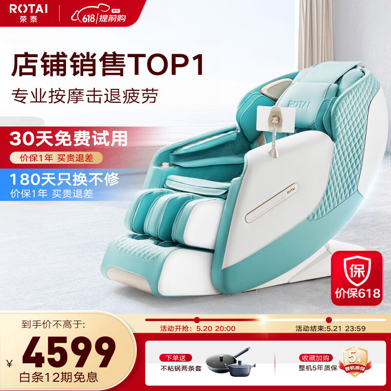 荣泰(RONGTAI) 按摩椅家用全身太空舱零重力多功能智能电动按摩沙发椅子生日礼物 A50 苹果绿价格:4599.00元!