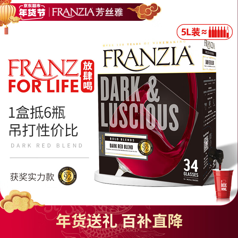 FRANZIA芳丝雅浓郁红3L盒装单杯半干红酒美国原盒进口热红酒年货送礼价格:99.90元!