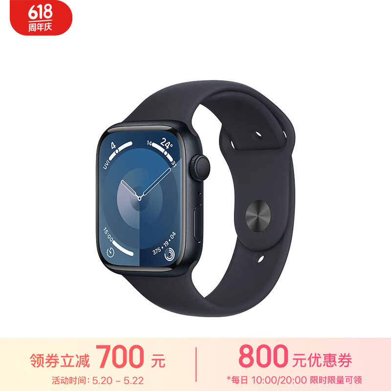 Apple/苹果 Watch Series 9 智能手表GPS款45毫米午夜色铝金属表壳 午夜色运动型表带S/M MR993CH/A价格:3199.00元!
