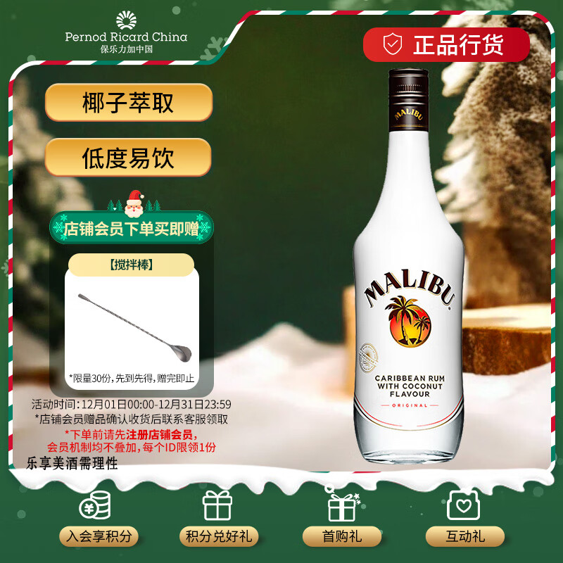 马利宝(Malibu) 朗姆配制酒 加勒比椰子味 洋酒 700ml 年货送礼价格:83.00元!
