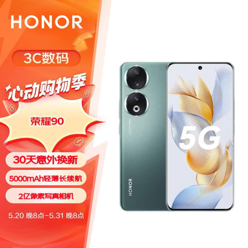 荣耀90 2亿像素写真相机 零风险调光护眼屏 5000mAh轻薄长续航 16GB+256GB 墨玉青 5G价格:1799.00元!