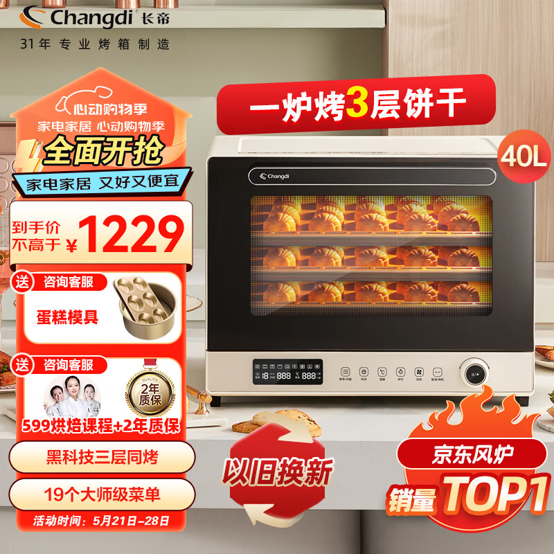 长帝(changdi)家用风炉电烤箱 40升专业多功能烤箱 搪瓷内胆 多层同烤 长帝大白鲸价格:1189.00元!