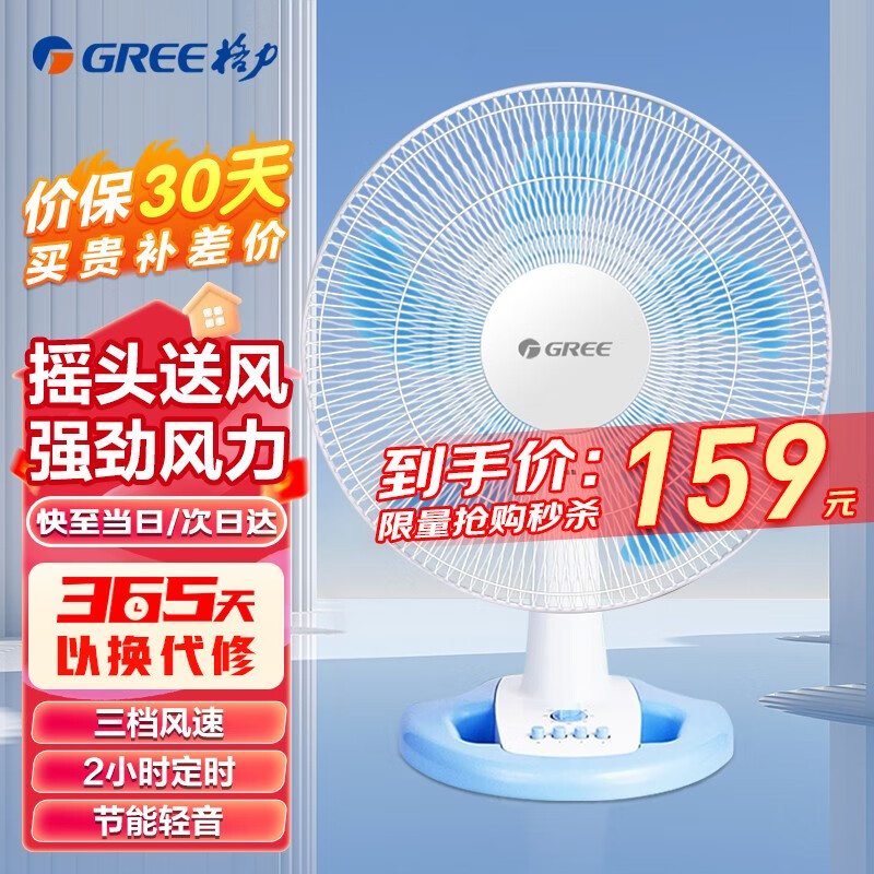 格力(GREE) 电风扇家用台扇电扇床头定时台式电风扇办公学生室宿舍小风扇转页扇FSTC-40价格:179.00元!