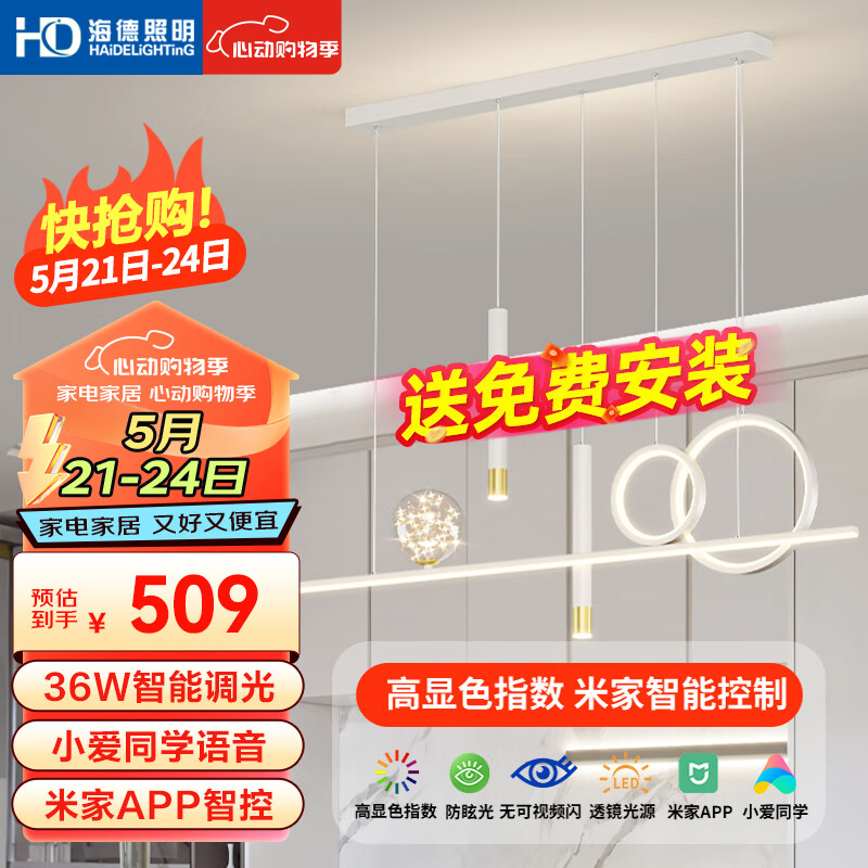HD米家智能AI语音吊灯 led餐吊灯餐厅灯卧室书房灯现代简约灯饰灯具价格:569.00元!