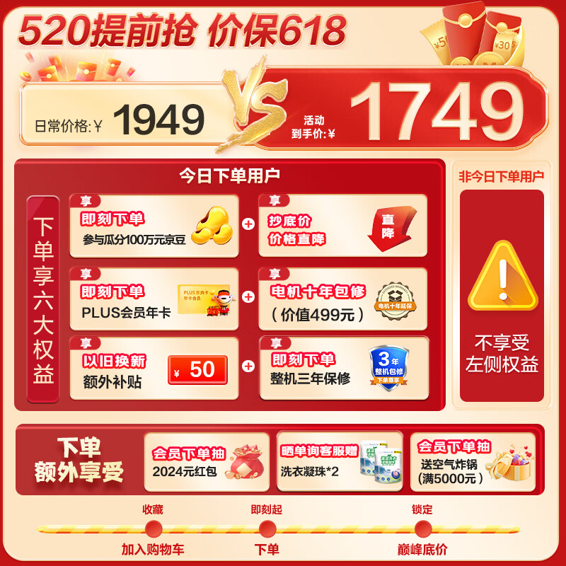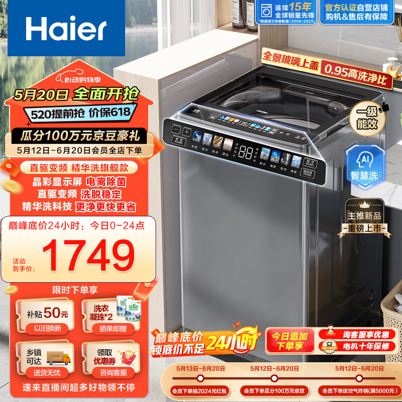 海尔(Haier)波轮洗衣机全自动家用 10公斤大容量 直驱变频 一级能效 高效精华洗 以旧换新EB100B37Mate5价格:1749.00元!