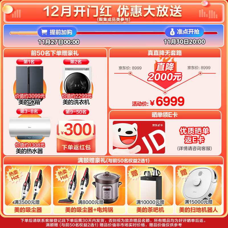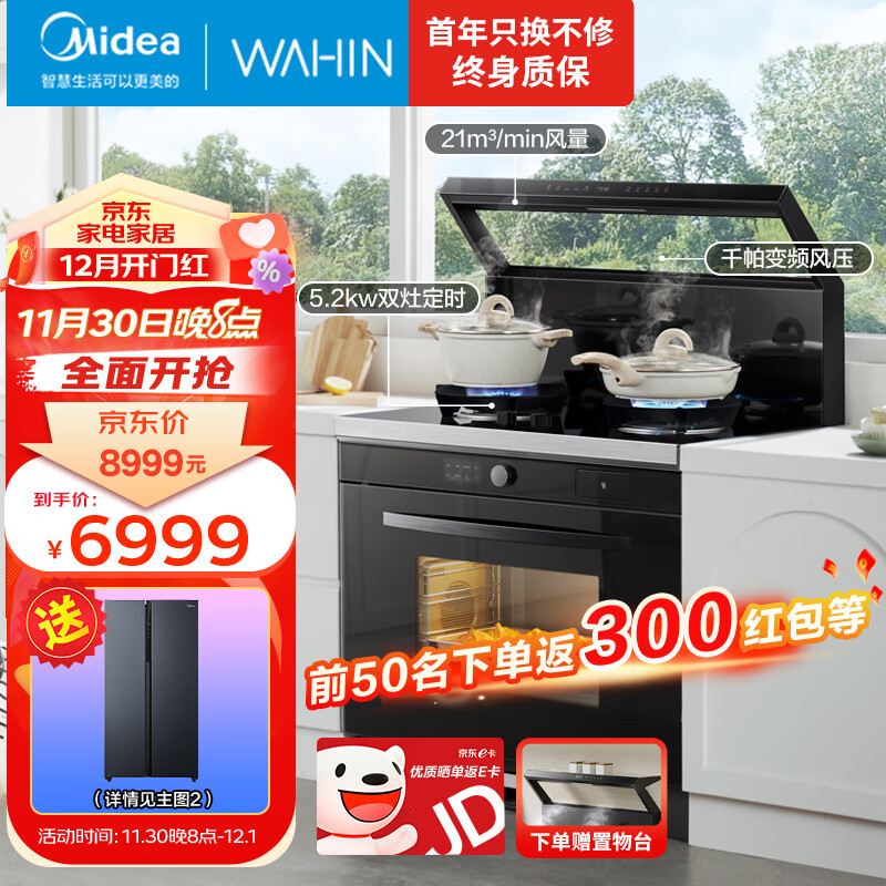 美的(Midea)出品 华凌小透明集成灶 变频21风量千帕强压 5.2KW燃气灶双灶定时 自清洁 蒸烤一体WX9S 天然气价格:8999.00元!