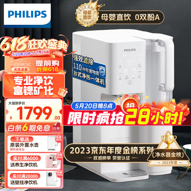 飞利浦(PHILIPS)Cube家用RO反渗透台式即热净饮水机净水器加热直饮一体机富锶矿化免安装净水器ADD6860价格:1799.00元!