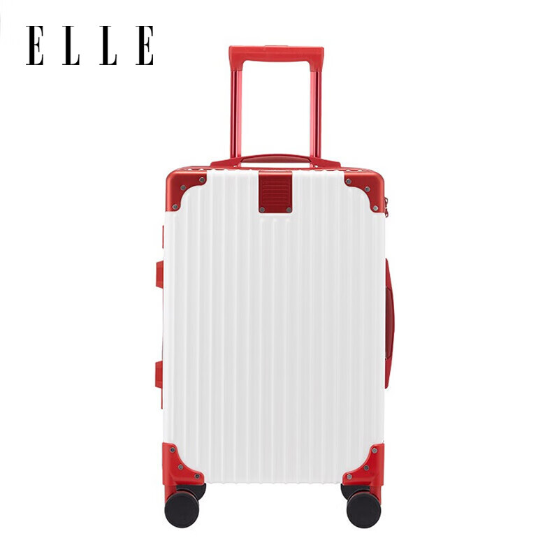 ELLE法国29英寸白色行李箱拉杆箱可登机拉链旅行箱万向轮时尚密码箱价格:449.00元!
