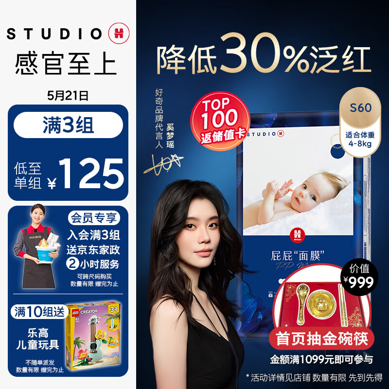 好奇(Huggies)屁屁面膜纸尿裤小号S60婴儿尿不湿超薄透新老交替发货价格:147.00元!