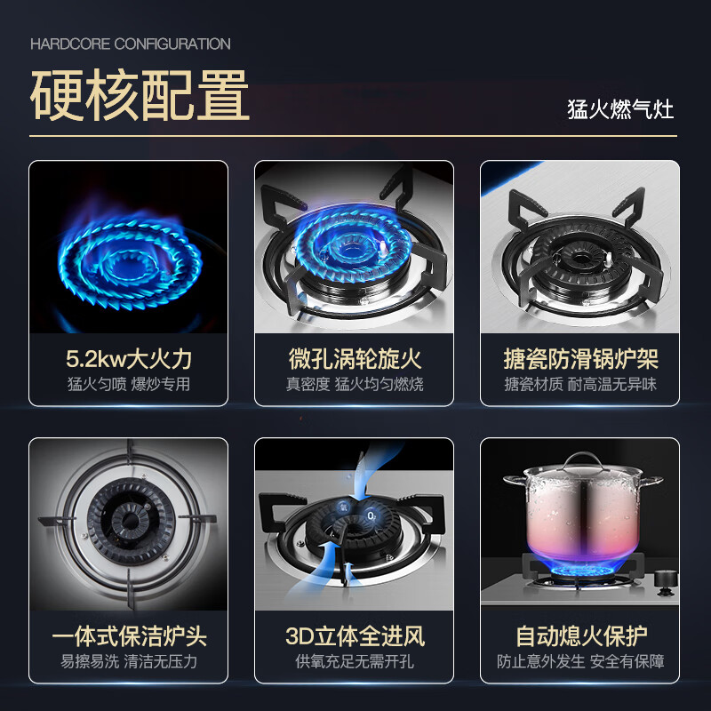 功能:多段控火,童锁保护,熄火保护