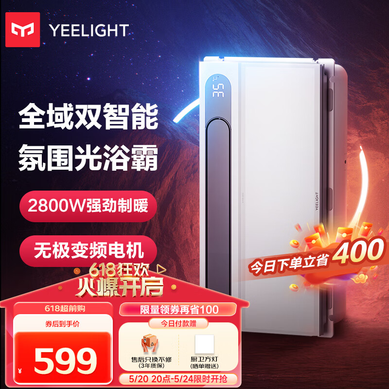 Yeelight智能浴霸 多功能风暖 支持米家小爱同学氛围灯 浴室取暖器价格:1099.00元!