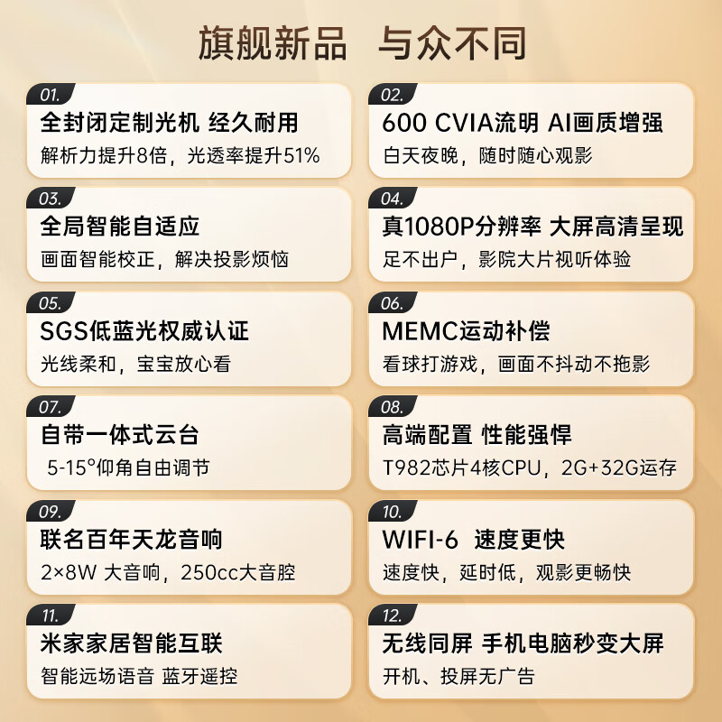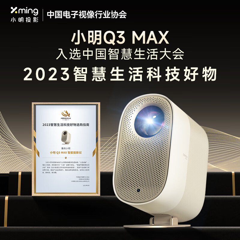 小明 Q3 MAX 投影仪家用 超高清家用卧室投影机 智能家庭影院(600 CVIA流明 运动补偿 天龙音响联名)价格:1999.00元!
