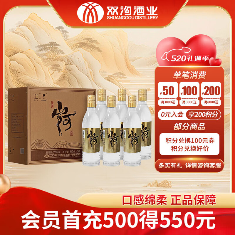双沟 山河大曲 浓香型白酒 53度 500ml*6瓶 整箱装 纯粮口粮酒价格:319.00元!