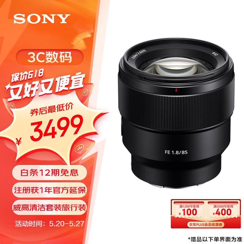 索尼(SONY)FE 85mm F1.8全画幅中远摄定焦微单相机镜头 E卡口(SEL85F18)价格:3599.00元!