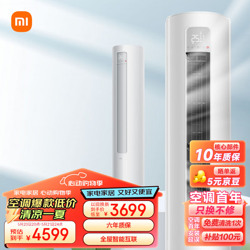 小米3匹 新一级能效 变频冷暖 智能自清洁 巨省电 客厅圆柱空调立式柜机 KFR-72LW/N1A1价格:4599.00元!