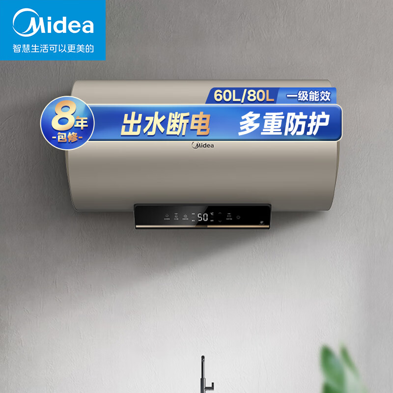 美的(Midea)80L热水器2200W速热 出水断电家用热水器 一级能效F8022-ZK3S(HE)*价格:2699.00元!