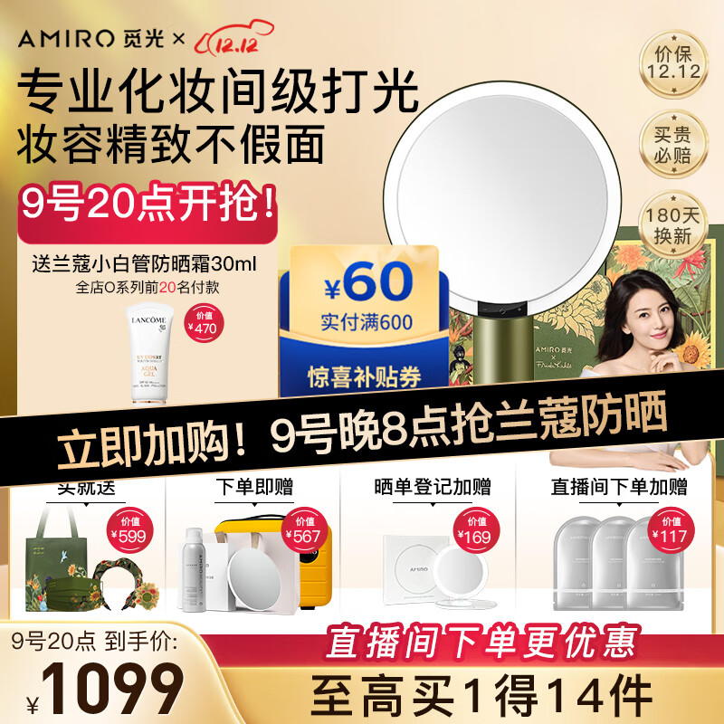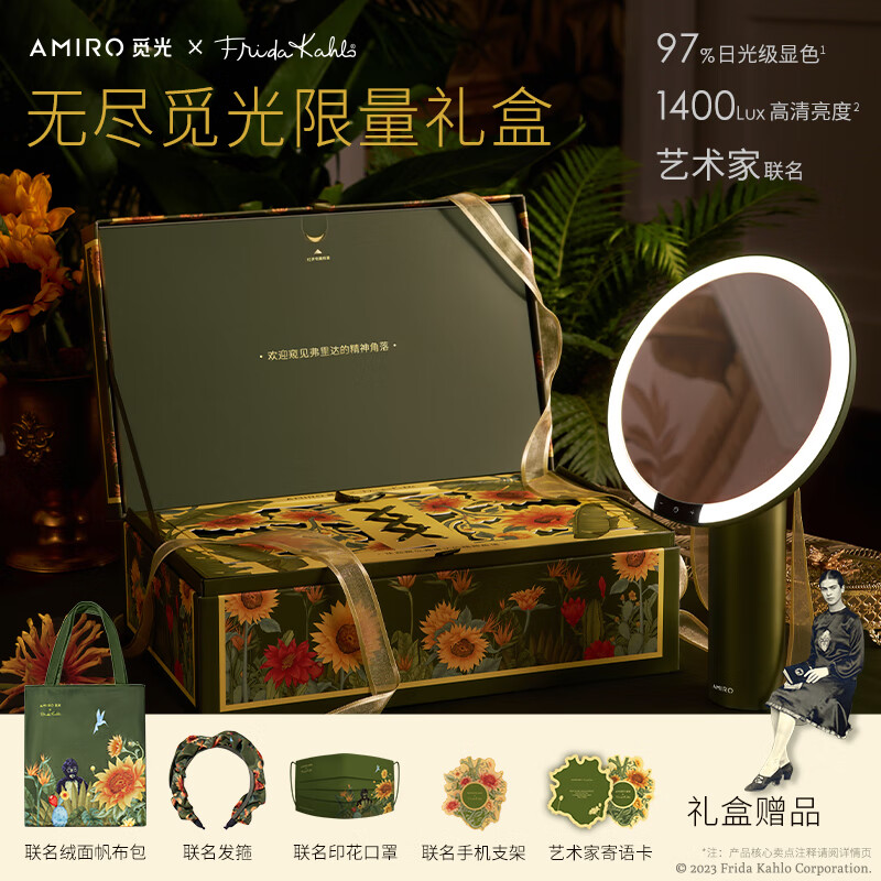 AMIRO觅光 化妆镜带灯led日光梳妆美妆镜 补光智能高清便捷 圣诞生日礼物送女生送老婆 FRIDA联名礼盒款价格:1629.00元!