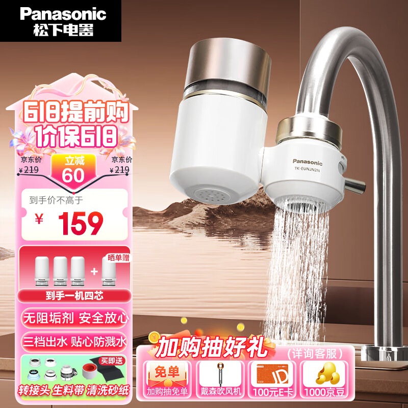松下(Panasonic)净水器家用水龙头过滤器自来水过滤器水龙头净水器家用厨房水龙头新升级款TK-EUNJN2N 一机三芯价格:159.00元!
